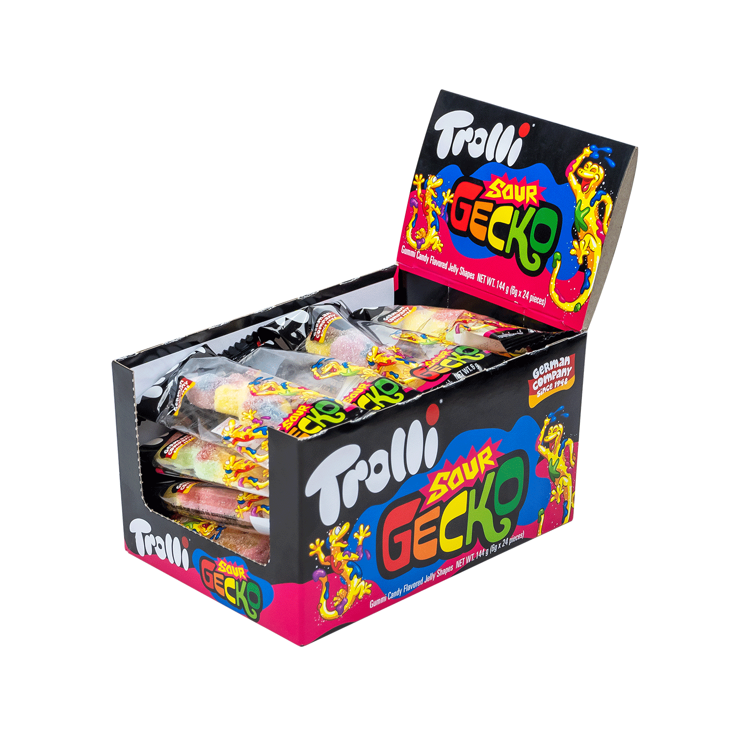 Cute, colorful, and bursting with fruity fun – Trolli Mini Gecko is a tiny treat with a big sour kick!